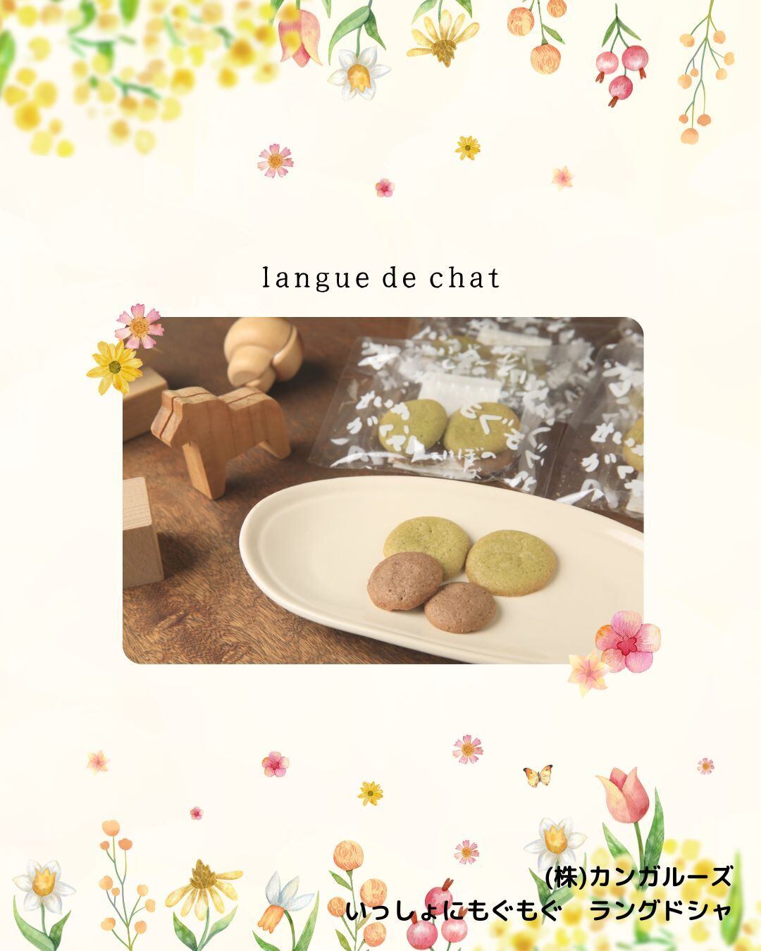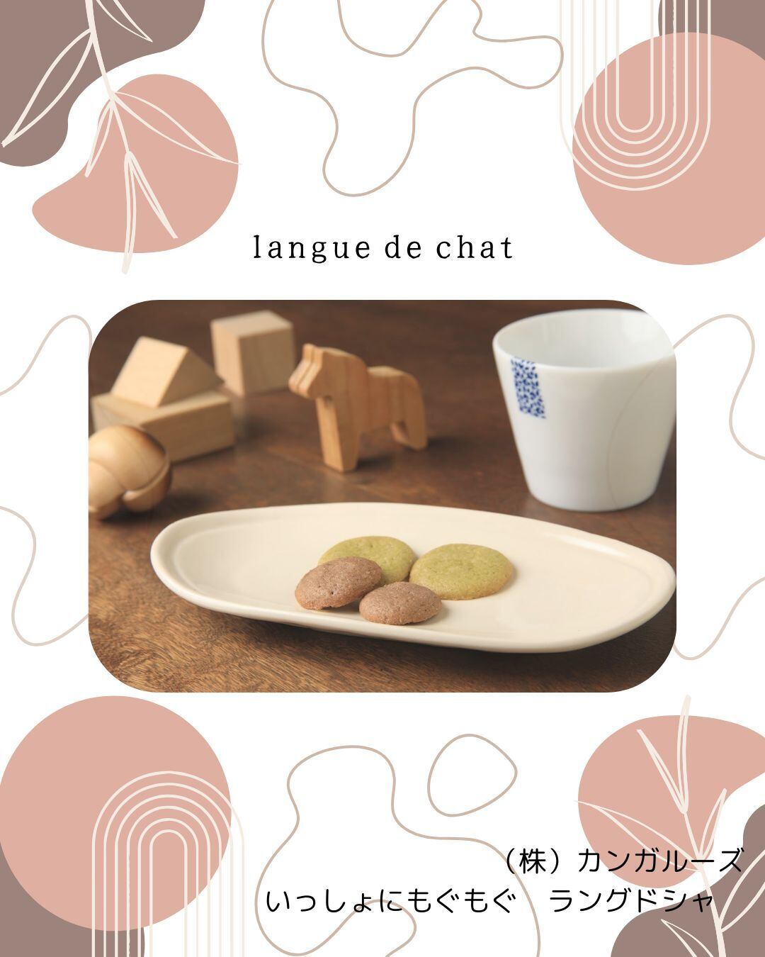 猫の舌という意味のラング・ドシャのクッキーは薄くてお子様の小さな手でも持ちやすいサイズとなっております。